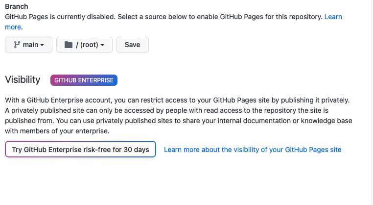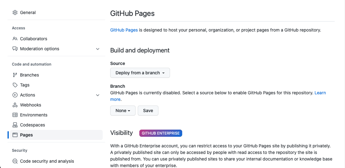 3. Branch 란에서 배포할 branch를 선택하고 Save 한다.