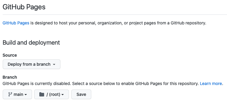 그러면 이런 화면이 나올 것인데, 우리는 Deploy from a branch를 진행할 것이다.