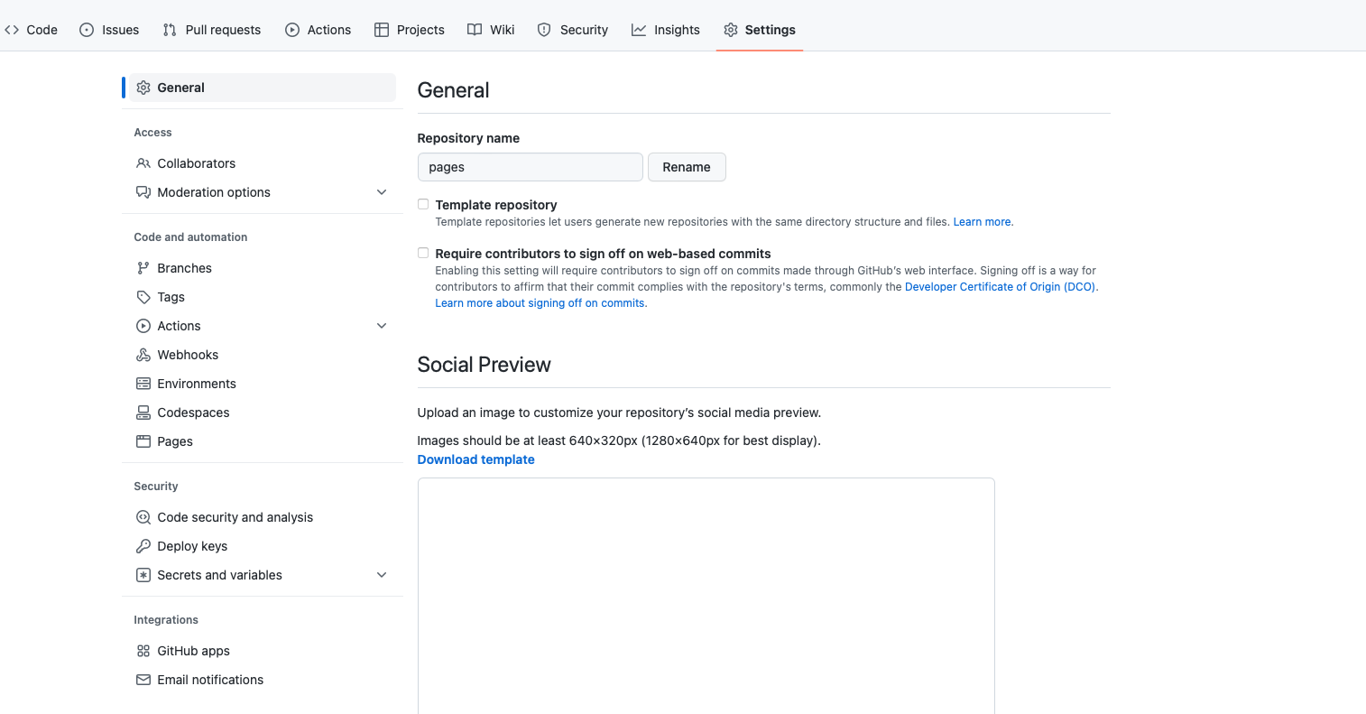 public으로 잘 설정했으면, Setting 메뉴의 Pages로 들어간다.