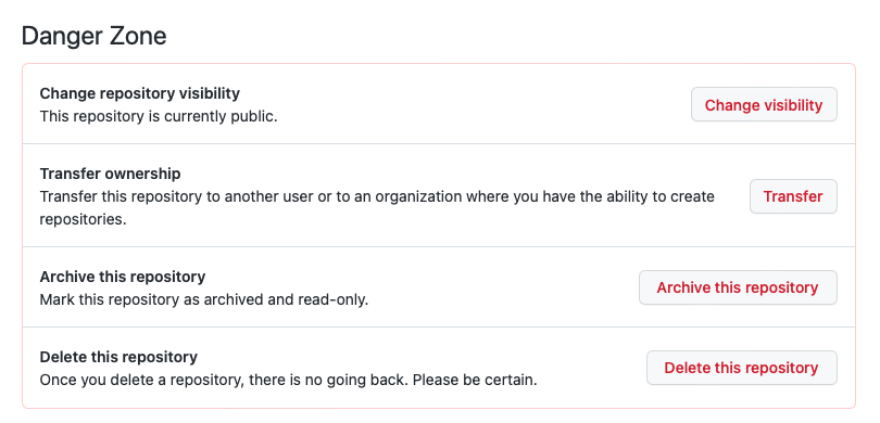 Change repository visibility 란에 This repository is currently public으로 되어 있으면